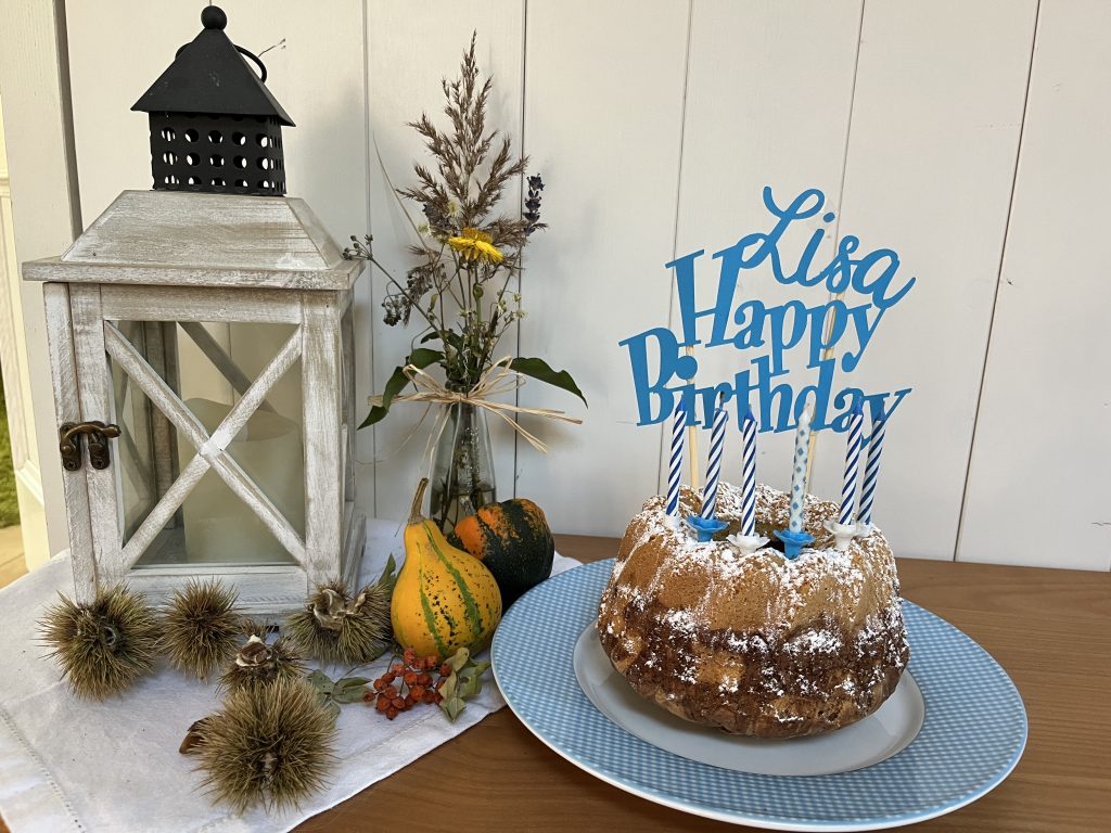 Der aus Tonkarton geplottete Schriftzug kann sowohl an die Tür gehängt werden, als auch in Kuchen gesteckt werden.